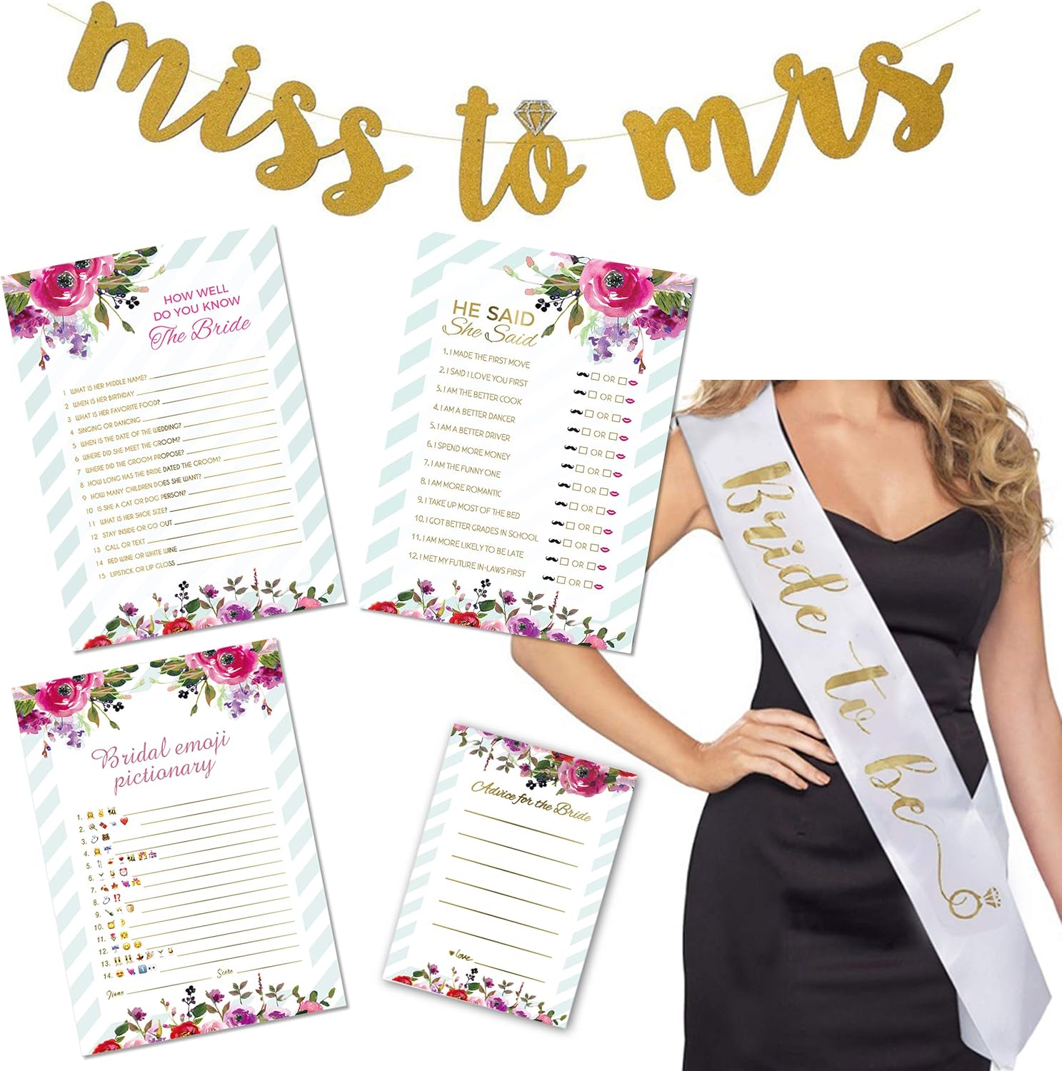Amazon Com Bridal Shower Games Bundle With Miss To Mrs Gold