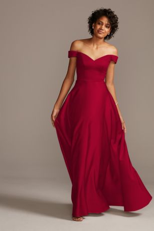 Off The Shoulder Satin A Line Bridesmaid Dress David S Bridal