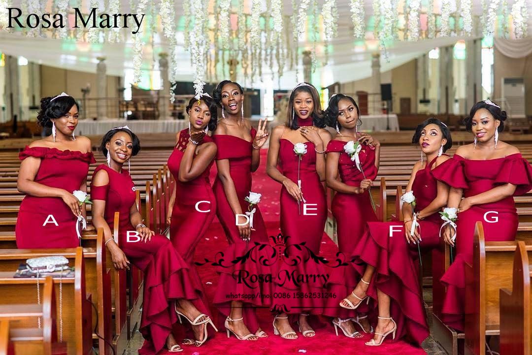 Sexy Burgundy Mermaid African Bridesmaids Dresses 2020 Mix Styles Plus Size High Low Ruffles Cheap Arabic Maid Of Honors Wedding Guest Gowns Bridesmaid Dress Stores Bridesmaid Dresse From Sarah Bridal 99 56 Dhgate Com