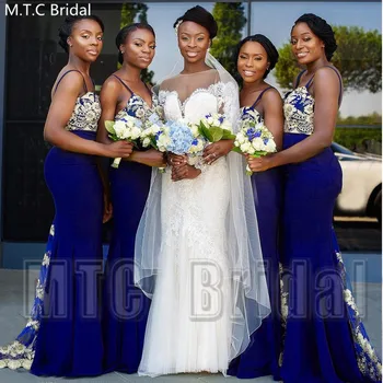 New 2019 Royal Blue African Bridesmaid Dresses Spaghetti Strap