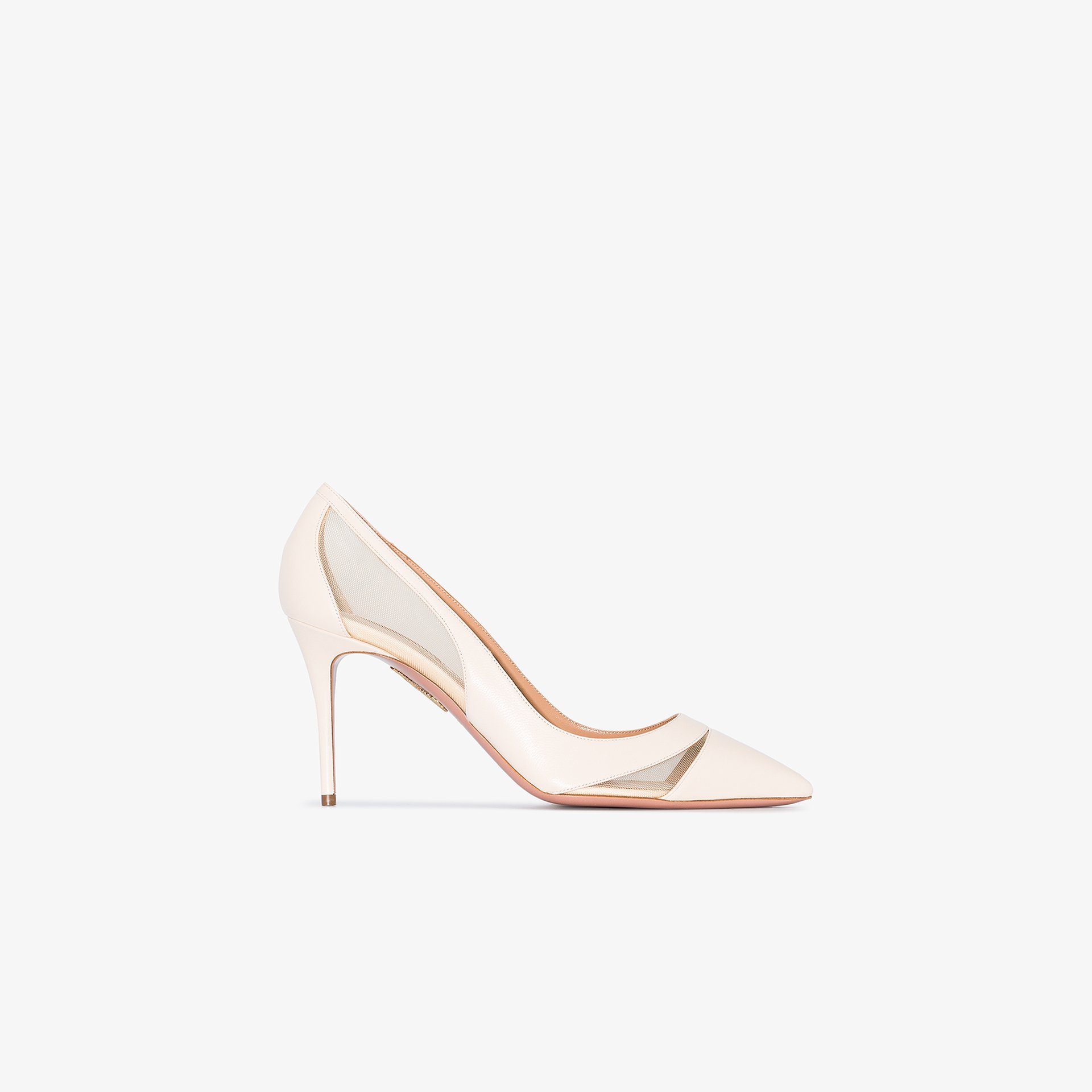 Aquazzura Cream Savoy Mesh Leather Pumps Browns