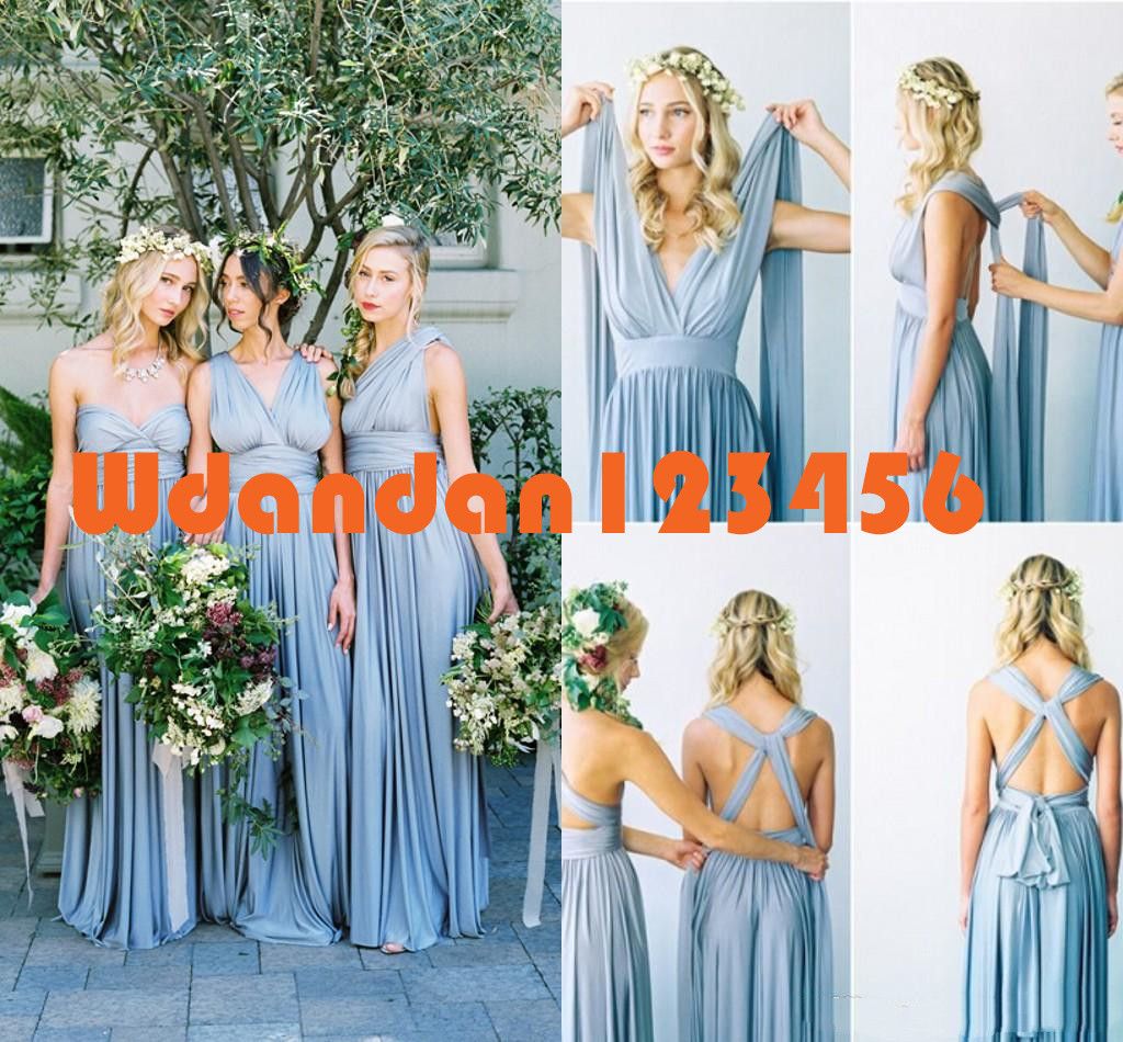 Cheap Baby Blue 2020 Simple Convertible Bridesmaid Dress V Neck