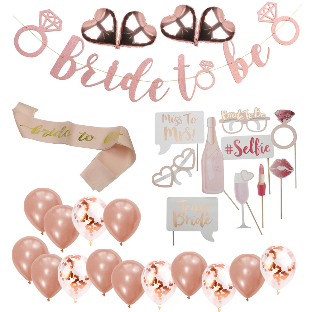 Rose Gold Bride To Be Set Team Bride Balloons Banner Photo Booth