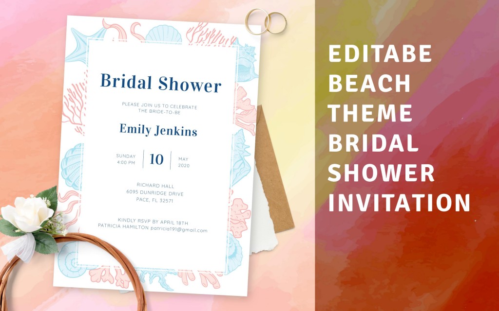 Sea Shells Beach Theme Bridal Shower Invitations Unique Bridal