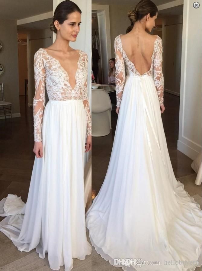 New Arrival Wedding Dresses V Neck Lace Long Sleeves Tulle Keyhole