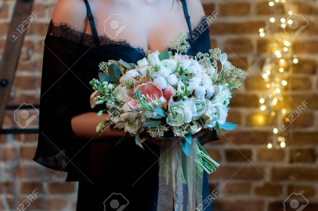 Bridal Bouquet With Cotton Wedding The Bride In Black Dressing