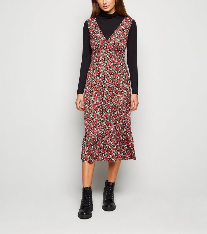 Urban Bliss Black Floral Midi Dress New Look