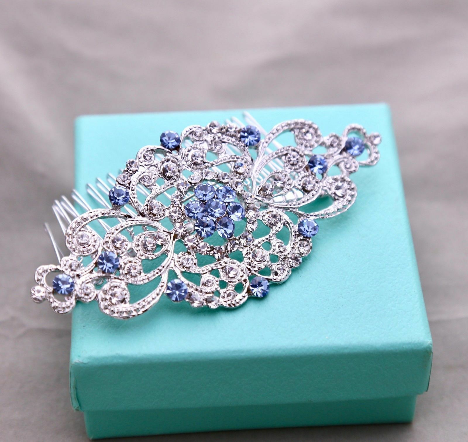 Blue Crystal Hair Comb Bridal Tiara Bride Wedding Hair Piece