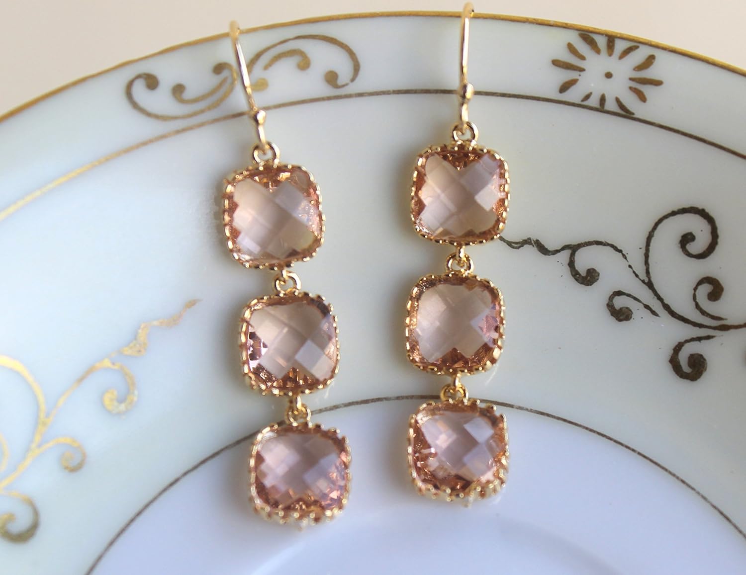 Amazon Com Champagne Blush Earrings Peach Square Earrings Gold
