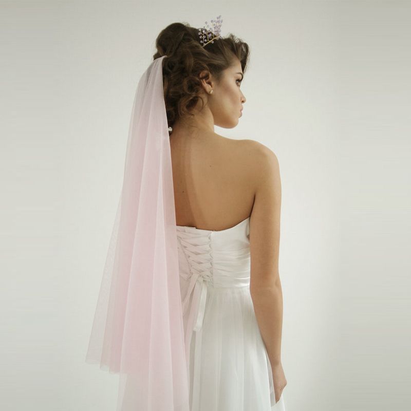 Pink Wedding Veils With Blusher Soft Tulle Cut Edge Bridal Veil