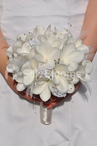 Amazon Com Artificial Fresh Touch White Frangipani Bridal Bouquet