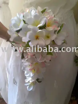Wedding Pink White Frangipani Bridal Tierdrop Flower Bouquet