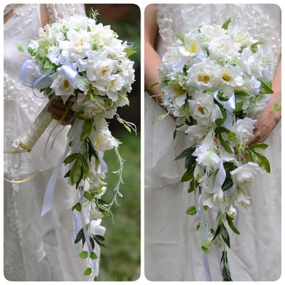 Rustic Green And White Cascading Bridal Hand Bouquet Andrew And