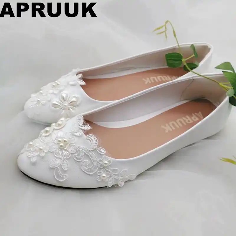 Sales Promotion White Lace Ivory Pearls Bridal Shoes Women Flat Heel Sweet Flower Girl Wedding Party Bridesmaid Shoes Shoes Woman Flat Women Flatflat Heels Aliexpress