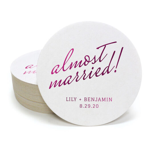Personalized Expressive Script Almost Married Round Coasters