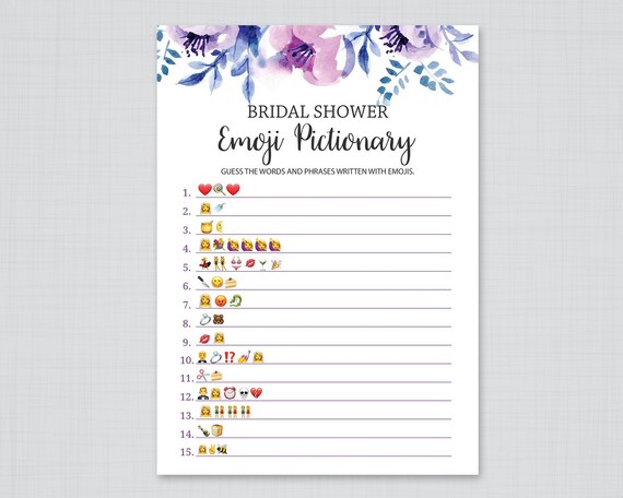 Lavender Bridal Emoji Pictionary Game Purple Bridal Shower Etsy