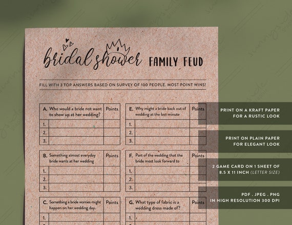 Bridal Shower Family Feud Top 3 Survey From 100 Person Etsy