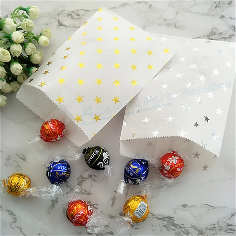 200pcs Metallic Gold Star Paper Gift Bags Silver Sweetie Style Bag