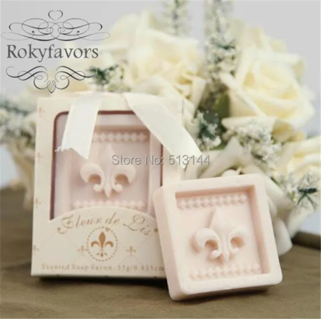 Free Shipping 50pcs Fleur De Lis Soap Favors Scented Soap Bridal Shower Party Favors Ideas Wedding Party Decoration