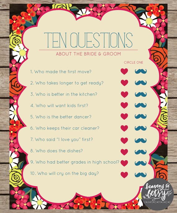 Fiesta Floral Ten Questions Bridal Shower Wedding Game Etsy
