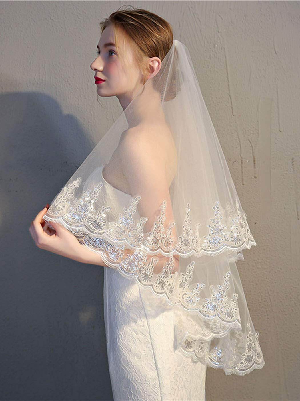 Wedding Veil Lace Appliques 2 Tier Bridal Veil Fingertip Length With Comb Lazada