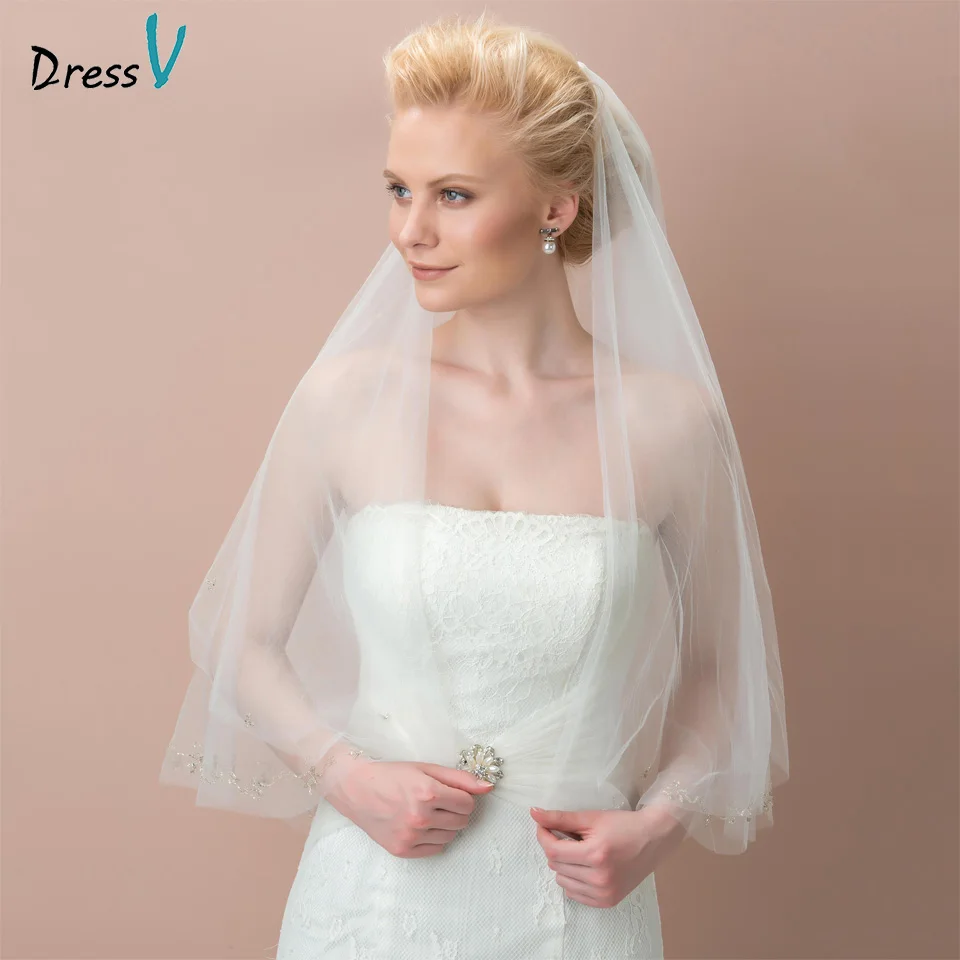 Dressv Ivory Mesh Wedding Veil Tulle Beads Elbow Bridal Veil Two Layer Beads Edge Wedding Accessories Bridal Veil For Wedding Bridal Veils Aliexpress