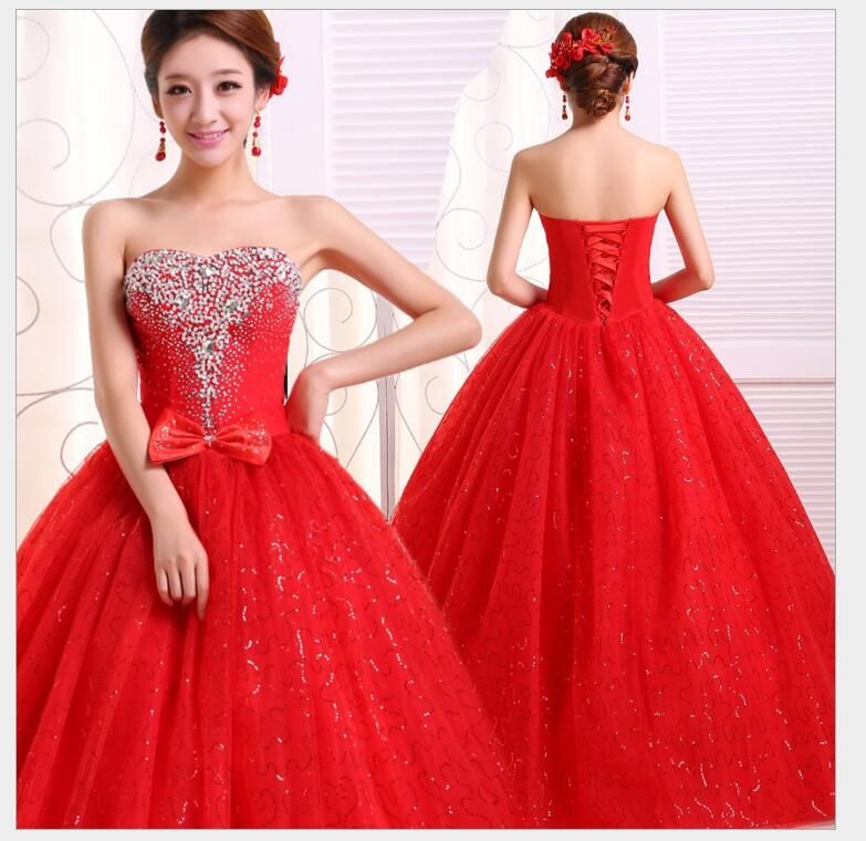 New Big Red Tube Top Bright Diamond Bride Wedding Dress Wedding