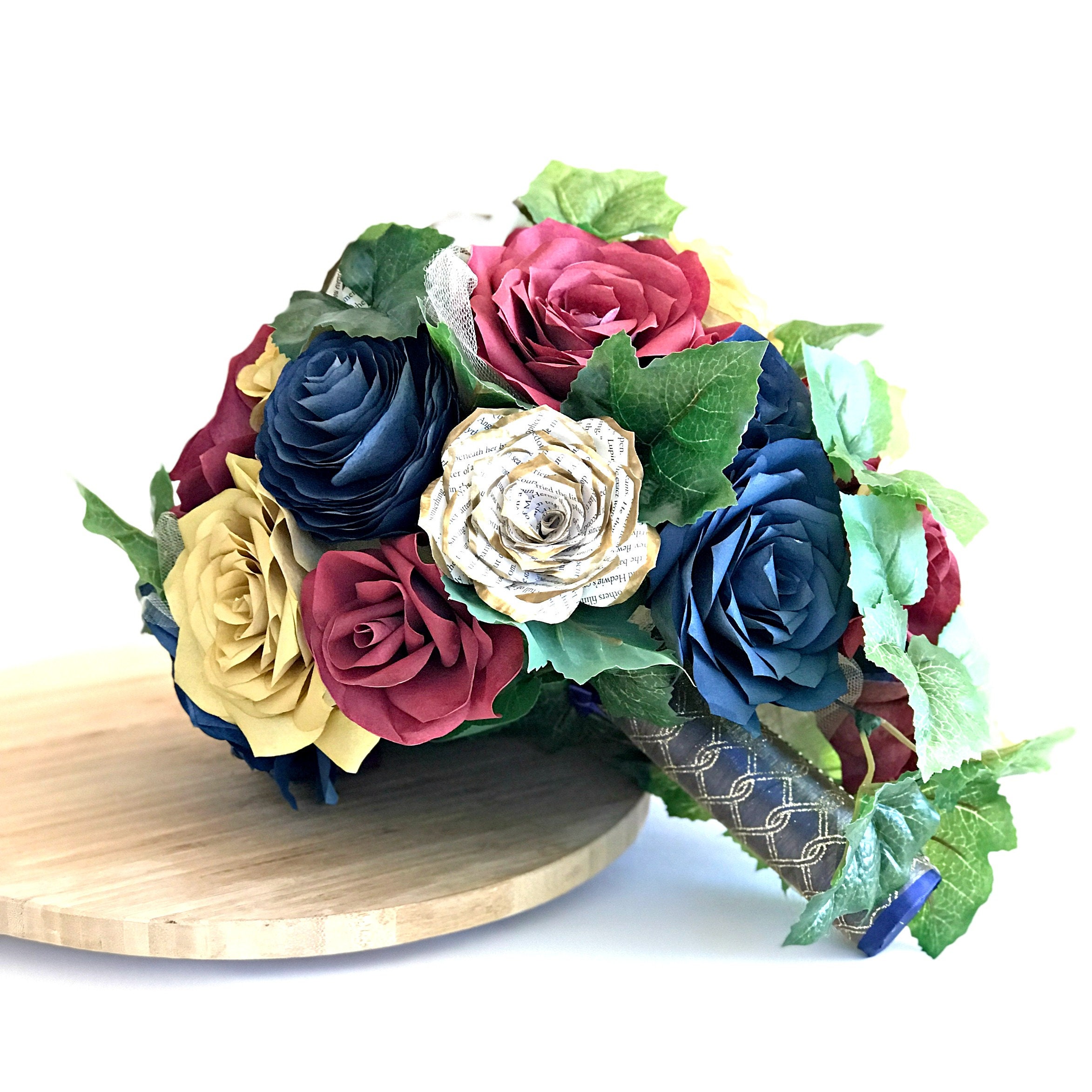 Burgundy Gold And Navy Blue Cascading Paper Rose And Peony