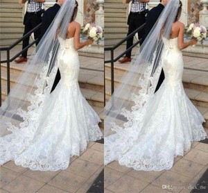 One Tier Wedding Veil With Lace Trim Edge Long Tulle Cathedral
