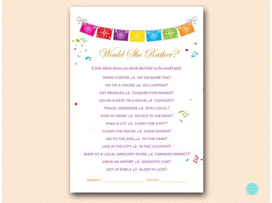 Fiesta Would She Rather Bridal Shower Game Printabell Express