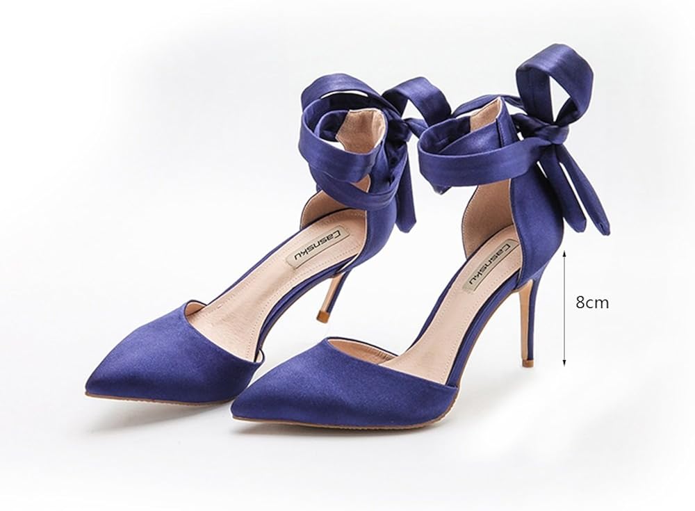Shoes 8cm Blue Summer Silk Satin Strap High Heel Wedding Empty