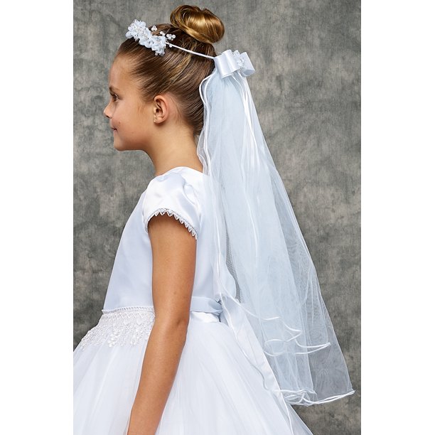 Flower girl dress for less is your communion one stop shopping super store. Roll over image to zoom in click to enlarge. Browse davids bridal stunning collection of first communion accessories including communion shoes veils gifts for girls headpieces that she will love. First communion veil and headpiece girls holy first communion headpiece with veil communion veil flower headpiece primera comunion lassosboutique.