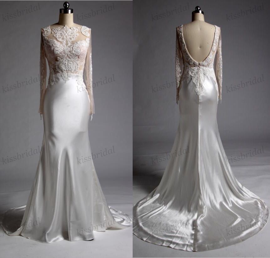 Lace Wedding Dresses Real Photos Sheath Formal Bridal Gowns Silk