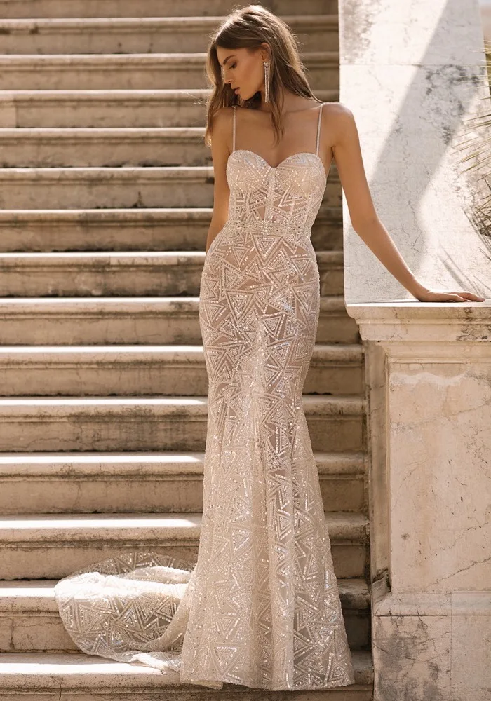 2019 Berta Weding Dress With High Quality Lace Spaghetti Straps