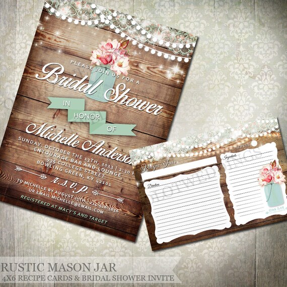 Rustic Bridal Shower Invitation Mason Jar Invitation Country Bridal Shower Rustic Invite And Recipe Card Diy