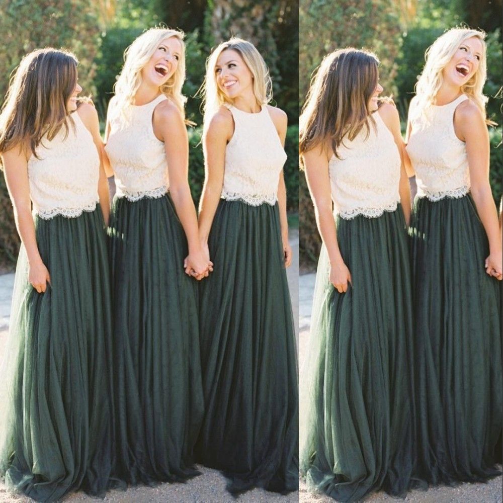 New Sexy Country Arabic Dark Green Bridesmaid Dresses Lace Top A