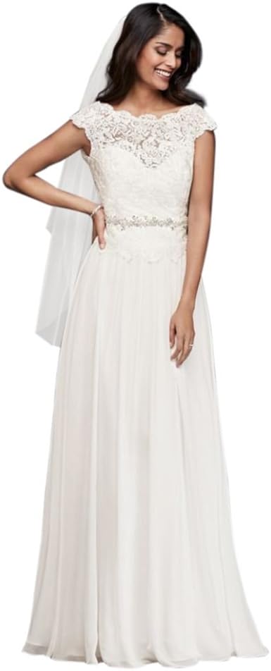 David S Bridal Illusion Lace And Chiffon A Line Wedding Dress