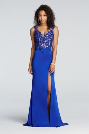 Illusion Lace Applique Fitted Faille Prom Dress David S Bridal