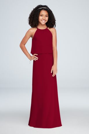 Flounced Crinkle Chiffon Junior Bridesmaid Dress David S Bridal