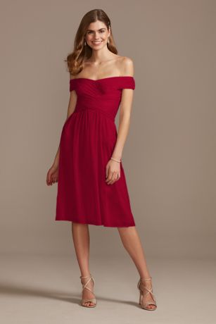 David S Bridal Off The Shoulder Tea Length Bridesmaid Dress Style