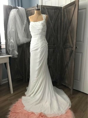 Davids Bridal One Shoulder Chiffon Wedding Dress Beautiful With