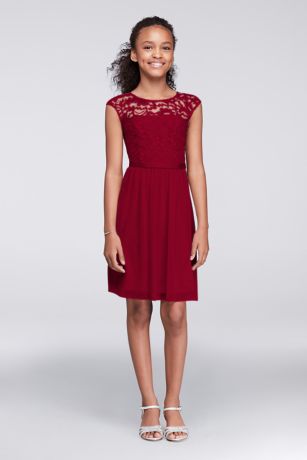 Cap Sleeve Lace And Mesh Girls Dress David S Bridal