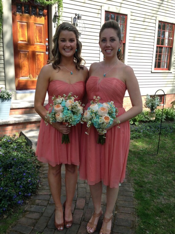 Turquoise And Coral Bridesmaid Jewelry Set Davids Bridal Etsy