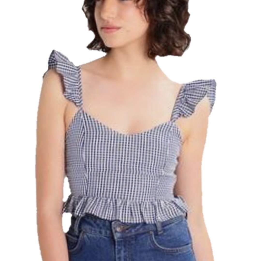 Buy Debra Bridal Store Black And White Checks Top For Women Ruffle Shoulder At Amazon In