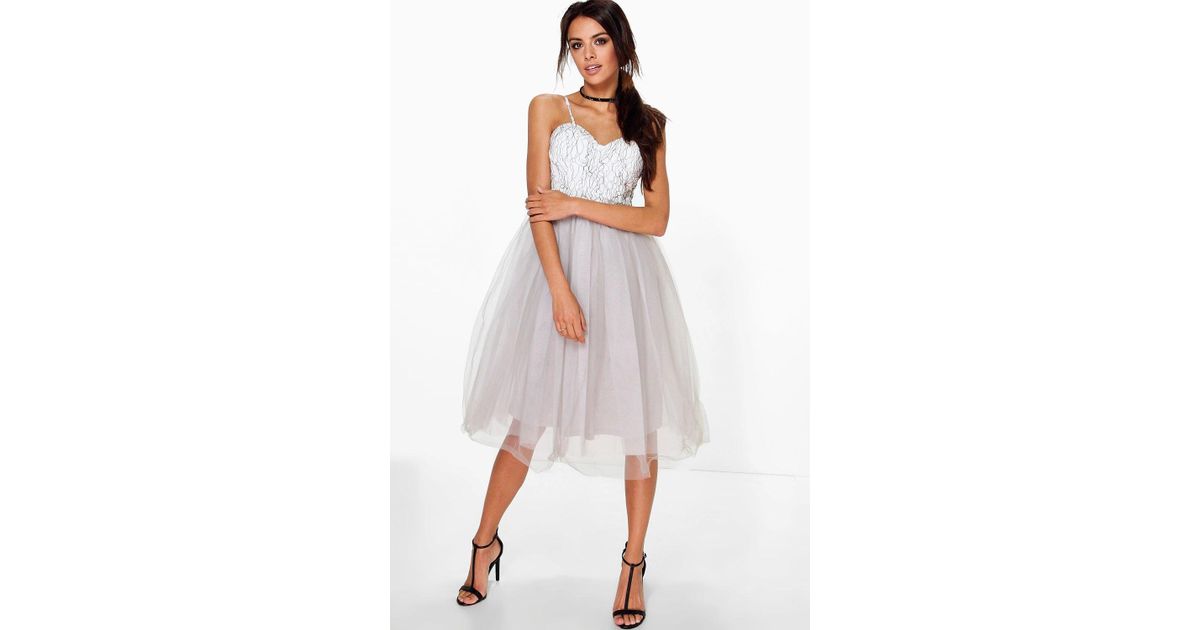 Boohoo Boutique Ana Corded Lace Tulle Prom Dress In Grey Gray Lyst