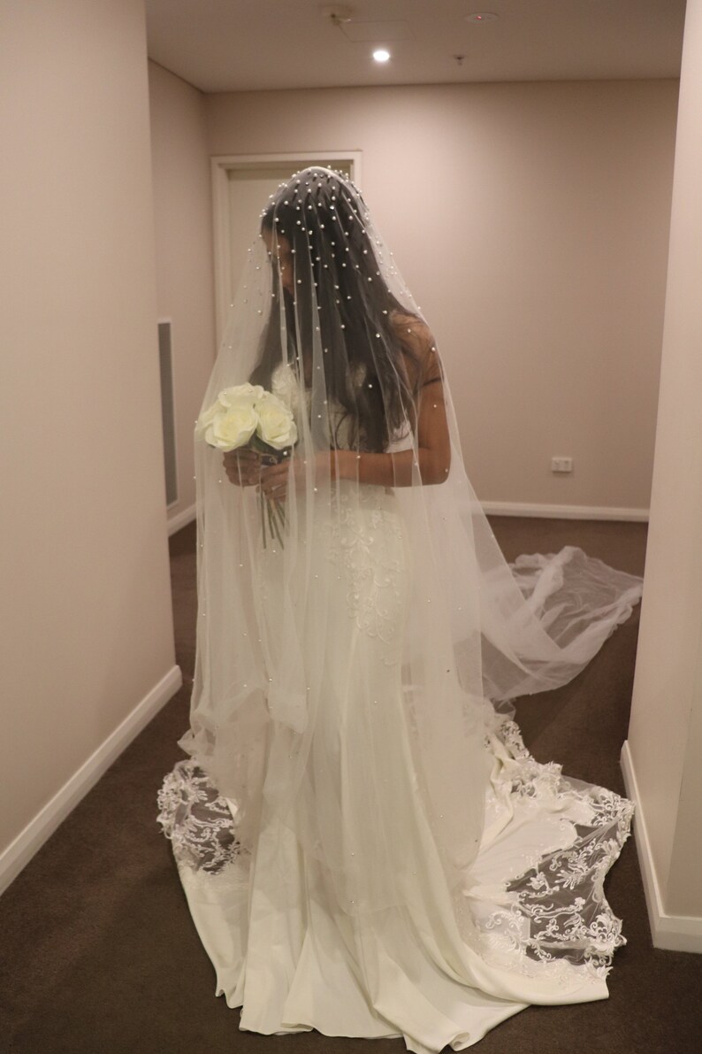 Pearl Rhinestone Wedding Drop Veil Diamante Wedding Veil Etsy