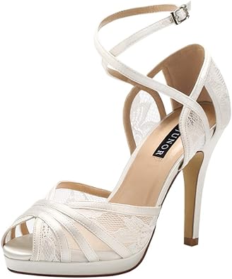Amazon Com Erijunor Peep Toe Lace Wedding Shoes High Heel