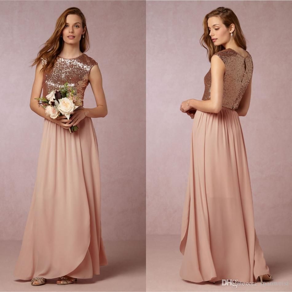 Bhldn Two Pieces Sequins Country Bridesmaid Dresses Cheap Jewel