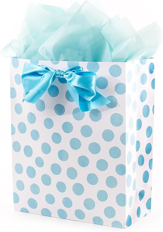 Amazon Com Hallmark 15 Extra Large Gift Bag With Tissue Paper Blue Polka Dots And Bow For Baby Showers Birthdays Bridal Showers And More Kitchen Dining