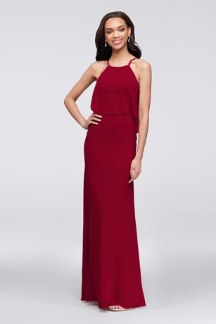Flounced Crinkle Chiffon Sheath Bridesmaid Dress David S Bridal
